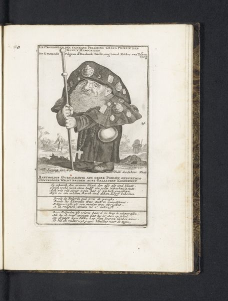Editor: We're looking at "The Dwarf Cornutus Foxhornius as a Cuckold" created around 1720 by Joost van Sassen. It's a print, an engraving actually, that features a caricature. I'm struck by the… weirdness, really. It's like something out of a bizarre dream. What do you make of it? Curator: Dreams… yes, dreams are whispers from the soul, and this engraving feels like a rather loud proclamation! The composition, the grotesque figure carrying another, is so wonderfully theatrical. It makes me think about those Baroque sensibilities that embraced the strange. Doesn’t it feel almost allegorical, a stage upon which someone is enacting an emotion for everyone to consider? And what is your first reaction to the cuckold here? Editor: Well, I think I mostly didn’t understand it! Why a dwarf? And why the…horns? I was too focused on the visual weirdness, not any story it could be telling. I didn't quite connect "horns" with being a cuckold. Curator: Precisely! The visual pun! The horns, symbols of cuckoldry, turn the figure into a comical spectacle, whilst someone else oversees them. The Baroque delighted in this melding of social commentary and fantastical imagery. We find this caricature simultaneously amusing and disquieting; Van Sassen’s way of mirroring our own anxieties. It’s wonderfully absurd. Don't you think? Editor: It definitely makes me rethink how I look at art from this period. I want to think more about symbolism. Thanks! Curator: And me: considering again, today, how art’s reflections speak loudly, or often whisper softly to invite us closer…