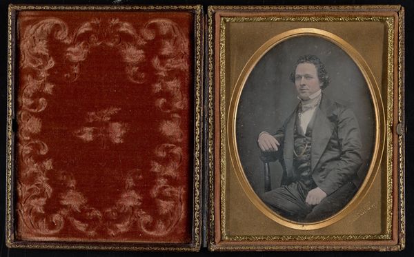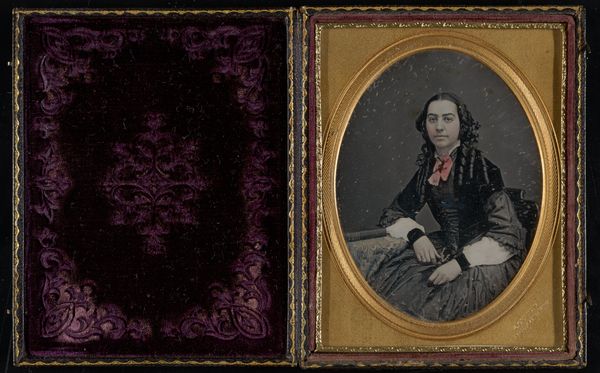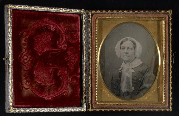 This portrait of a young couple is a daguerreotype, made by Jeremiah Gurney, a prominent New York photographer. It is a direct positive image created on a silver-plated copper sheet, polished to a mirror finish. The plate was then sensitized to light with iodine fumes, exposed in a camera, and developed with mercury vapor. The resulting image is incredibly detailed, with a unique sense of depth and presence. The reflective surface of the silver gives the photograph a luminous quality, almost as if the couple is illuminated from within. The daguerreotype was a cutting-edge technology at the time, but it was also a labor-intensive process. Each image was unique, and required great skill and precision to produce. This made daguerreotypes relatively expensive, and therefore accessible only to a certain class of people. Considered in light of the immense labor involved, this image is a potent reminder of the social and economic context in which it was created.