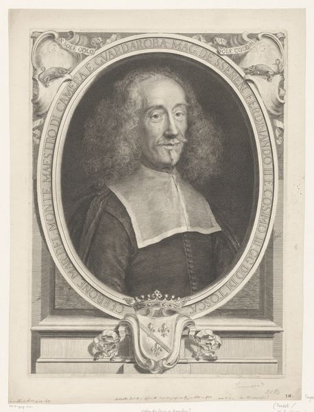 Jean Lenfant created this print of François-Théodore de Nesmond sometime between 1615 and 1674. De Nesmond, a member of the French upper class during the 17th century, is framed by an oval border. The inscription that encircles him indicates that he was the presiding judge of the high court of France. During this era, portraiture served as a powerful tool to reinforce social hierarchies and project idealized images of power. De Nesmond is depicted wearing the garb appropriate to his station. It's worth noting the absence of women and people of color in positions of power during this time. This portrait, while seemingly a straightforward depiction of a man in authority, also speaks volumes about the societal structures that elevated certain identities while marginalizing others. Though the visual cues of status are plain to see, it's important to consider who is included and excluded from this picture of power.