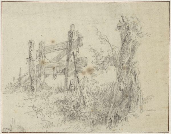 Editor: This is "Vervallen Russische grafkruisen op Wrangeleiland in de Kruisbaai, Nova Zembla," a pencil drawing by Louis Apol from 1880, housed in the Rijksmuseum. The scene feels incredibly stark and desolate. What stands out to me most is the fragility of those leaning crosses. What do you see in this piece? Curator: The power of the image resides precisely in the frailty you observe. The crosses, barely upright against a washed-out background, transcend their immediate representation as grave markers. Think about what a cross symbolizes: faith, hope, redemption. What does it mean when those symbols are broken or tilted? What happens to cultural memory when these physical embodiments decay? Editor: So, the physical decay mirrors a spiritual or cultural decline? Curator: Precisely. The crosses aren't just decaying wood; they're visual metaphors. They evoke the vulnerability of belief systems, and perhaps also speak to the transient nature of human endeavors in the face of nature’s overwhelming indifference. What are the connotations of “Russia” for you? How does that add layers? Editor: Russia makes me think of the vastness of the landscape, but also the power of the church. Curator: And what do you make of its arctic context? How might ice and cold shape those symbols of faith and nation? Editor: It is like the elements are taking everything back, eroding the cross back into dust. Curator: An apt observation! Consider, then, that Apol painted this almost a century before the gulags would mark these spaces of remote cold, loss, and death. It seems almost prophetic, a landscape where both life and faith find little purchase. It makes us ponder on memory and change. Editor: It gives a whole new appreciation to the work when viewed as not only landscape, but also cultural commentary and visual foreshadowing. Thanks for pointing this out.