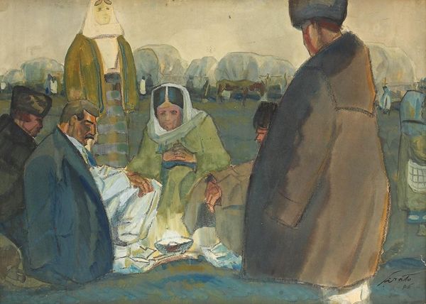 Curator: Ah, "Waiting Room" by Vincent van Gogh, painted in 1882. Look at the subdued light, the somber faces… Editor: Yes, there's a palpable tension isn't there? And it's all in the brown, that rich, earthy brown. Makes me think about what Van Gogh used—pigments, surely, but maybe the dirt and clay of the landscape bled right into them too? Curator: Interesting. Van Gogh was, at the time, working in the Netherlands and deeply concerned with the lives of ordinary people. One could say he’s observing the soul, searching for authenticity and, indeed, reality. Editor: "Authenticity" is tied to those choices. He's using oil paint, sure, but compare it to some pristine landscape or regal portraiture. The visible brushstrokes, the muddiness. This isn't slick. The artist is telling a truth, or at least the version available with the materials and the techniques he chose, right? Think about those darks-- Curator: --They nearly swallow the figures, especially those women in their bonnets. Look how their faces are obscured, lost in shadow. Only a patch of daylight through the window really cuts into that gloom. Editor: You're right to focus on the window because the construction says a lot about the socioeconomic status of the people inside, and the room’s use case. It may even tell us whether this painting emerged in a hospital or even in a community center. If we understand better where these people are waiting we might reveal something of how they are produced by the space they inhabit, and Van Gogh as an agent and as an individual produced by the very forces that are producing the scene inside! Curator: The composition does draw your eye upward, from the densely packed figures towards that window. The light, though subdued, offers a hint of… well, something beyond their present circumstances, doesn't it? Editor: The glass might have been cheap at that time, and it likely needed maintenance from local, working class glaziers, further illustrating his relation to laborers in Holland at the time, whether or not he was intending it to be captured in this painting, is simply part of the network! It’s exciting isn't it? Curator: Very exciting indeed! For me, the painting serves as a poignant snapshot, an almost voyeuristic peek at a quiet drama playing out. He's immortalized the mundane anxiety of simply... waiting. Editor: Precisely, we are the "waiters", or even "Van Gogh", we feel its impact more vividly if we analyze its elements. Curator: A thoughtful invitation, don't you think? Editor: I do think. Thank you for expanding that.