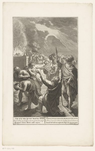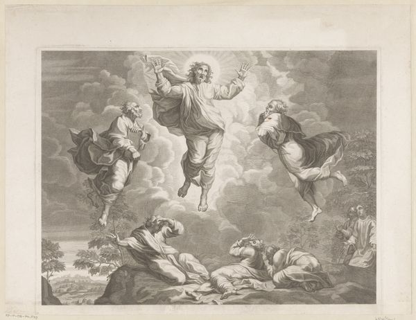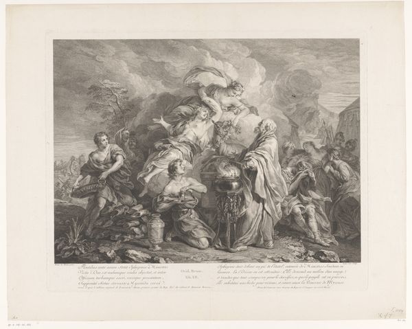 Louis Desplaces created this print, "Minerva and Time Revealing the Truth", in the early 18th century. It embodies the allegorical style popular during the Enlightenment, where abstract concepts were depicted through classical figures. Here, Minerva, the Roman goddess of wisdom, is seen alongside Father Time, who unveils Truth, represented as a radiant, nude female figure. Note the contrast between the active, enlightened figures at the top, and the men in the lower portion of the print who are overcome by Truth. This hierarchical composition reflects the era’s emphasis on reason and knowledge as tools to dispel ignorance. The print engages with power dynamics, contrasting divine female wisdom with mortal male fallibility. It invites reflection on how societal narratives are constructed and who gets to define “truth.” This piece acts as a commentary on the shifting cultural values of the period. It encourages viewers to pursue enlightenment while acknowledging the potential discomfort that truth can bring.