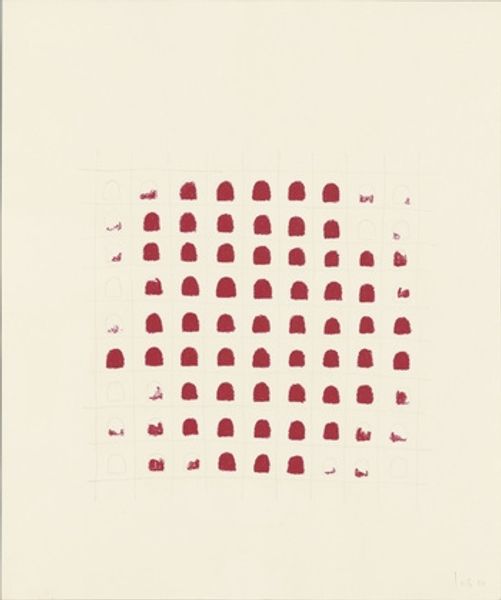 This work, "Triangular and Square Numbers" by Mel Bochner, presents simple geometric arrangements using dots to represent numerical sequences. The triangular forms, ascending like pyramids, evoke an ancient quest for order and understanding in the cosmos, while the square numbers represent the rational, structured world of human creation. These arrangements echo the Pythagorean fascination with numbers as the key to unlocking the secrets of the universe. Consider the pervasive presence of the triangle in religious art, symbolizing the Holy Trinity, or the square, representing earthly stability and order. Bochner, in his seemingly simple diagram, taps into a deep well of cultural memory. There's a psychological resonance to these patterns, reflecting our inherent drive to find patterns and meaning. Like a mandala, these forms draw us in, inviting contemplation and a sense of connection to broader, timeless truths. Through these simple shapes, Bochner invites us to consider the cyclical nature of knowledge and the enduring human quest for understanding, continually rediscovered and reinterpreted throughout time.