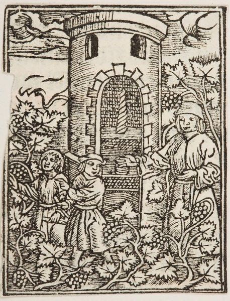 Editor: We're looking at "Christ Curing the Boy with a Demon," an anonymous piece. The stark black and white of the woodcut give it a powerful, almost urgent feel. What strikes you most about its composition? Curator: The artist's command of line is particularly striking. Notice how the density and direction of the lines create form and texture. Observe, also, how the architectural elements are rendered with a similar graphic intensity. Editor: It's interesting how the lines almost vibrate with energy. Curator: Indeed. This visual tension, created by the interplay of light and shadow, is heightened by the limited tonal range, lending the scene a dramatic intensity. Do you see how the composition is primarily structured? Editor: I see the two main figures facing each other in the center, and the artist made sure to use line to draw the eye to them. Curator: Precisely. That tension in the line animates the whole piece. I’ve learned a lot about how to describe it! Editor: Me too!