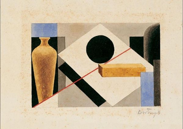 Curator: The immediate feeling I get from this drawing is unease. All these geometric forms scattered haphazardly, that giant eye peering down from the sky... it's incredibly unsettling. Editor: Indeed. We're looking at "Apocalyptic Landscape," a graphite drawing by Otto Gustav Carlsund from 1933. Its fusion of geometric abstraction with surreal elements renders it a fascinating object. Curator: I'm immediately struck by the contrast in textures achieved with the graphite. You've got these smooth, cylindrical forms against the more roughly shaded blocks, juxtaposed with that cloud-like stippling around the eye and that large circular... target, perhaps? Editor: A semiotic analysis suggests those contrasting textures create distinct visual planes. The ordered forms below contrast starkly with the cosmic, almost judgemental, sphere and eye above, evoking feelings of impending doom. Think about the sociopolitical atmosphere in Europe in 1933—the rise of totalitarian regimes, economic depression. Do you believe those concerns bled into this work? Curator: Certainly. Art doesn’t exist in a vacuum. The tumbled geometry feels symbolic of societal collapse, of old structures upturned. It makes me wonder how his own experiences or observations were brought to the canvas. Perhaps he envisioned the future for what he believed it could become, considering all of those structures were beginning to show fractures. Editor: Precisely! Carlsund, aligned with the Parisian artistic milieu of the 1930s, employed abstraction as a potent tool for social critique. His art could symbolize that time while being so beautifully surreal in the technique itself. Curator: Looking at the composition further, one has to give Carlsund credit for his artistic control. Even in supposed chaos, there is something visually harmonious. Editor: Agreed, the spatial arrangement, while jarring, generates a compelling visual rhythm. The pencil strokes invite the gaze and holds it there. Despite its diminutive scale, this drawing carries significant weight. I think for those exploring this piece, we hope to evoke an emotion or reflection upon seeing the piece. What better reflection for its time can someone provide? Curator: I concur. Ultimately, Carlsund masterfully employed formal elements to amplify a historical narrative of apprehension. Editor: The historical context provides a lens for understanding the artist’s visualized emotion of fear and disruption; that specific feeling is not one that fades over the ages, so it remains thought-provoking to the observer to this day.