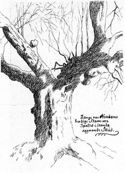 Arthur Rackham made this pen and ink drawing of a Gryphon in 1907. The image presents a mythical creature, half-lion, half-eagle, resting against a gnarled tree. Rackham was a leading figure in the Golden Age of British book illustration, a period when advances in printing technology allowed for more widespread reproduction of detailed artwork. This made art more accessible to a broader public, moving it beyond the elite circles that traditionally patronized the arts. Rackham’s illustrations, often featured in fairy tales and fantasy stories, tapped into a growing interest in folklore and the supernatural. These fantastical elements perhaps provided a form of escape from the realities of a rapidly industrializing society, as well as a way to express anxieties about the changing social order. The historian uses close visual analysis, knowledge of cultural trends, and an understanding of institutional factors such as advancements in printing, to interpret the social meanings of images like this.