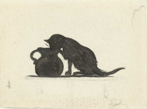 This silhouette of a cat was made by Nelly Bodenheim, likely in the early 20th century, as an illustration. The method here is straightforward: an opaque watercolor on paper, likely cut out to create a small, intimate silhouette. It's a simple image, yes, but it speaks to the labor involved in children's book illustration, a field often dismissed as 'minor' yet fundamental in shaping our early visual culture. Silhouettes are particularly interesting. This technique was originally associated with the French Minister of Finance, Étienne de Silhouette, who was known for his inexpensive shadow portraits. Here, Bodenheim cleverly uses the silhouette to create a charming and accessible image, turning a simple cut-out into a captivating character. It’s a reminder that even the simplest of forms can carry significant artistic and cultural weight. In its economy, Bodenheim’s silhouette suggests that the means of production are just as significant as the end result.