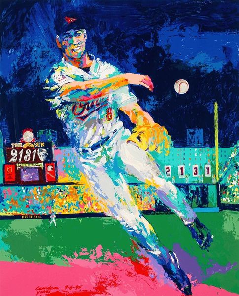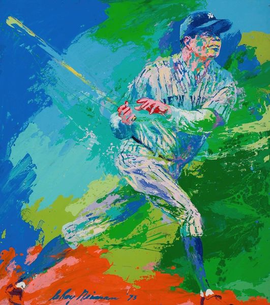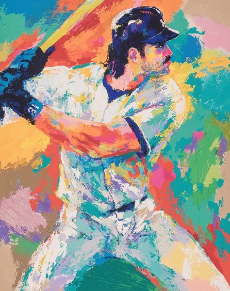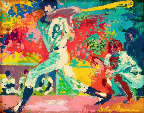 LeRoy Neiman made this painting of Pete Rose with vibrant strokes and a bold palette that captures the energy of a baseball game. The paint is applied with such physicality, you can almost feel the speed and intensity of the moment. Look at the way Neiman uses these thick, opaque daubs of color – reds, yellows, blues – to build up the forms of the players and the background. There's this incredible sense of movement, as if the painting itself is alive with the thrill of the game. The eye is drawn to the figure of Pete Rose, but the whole image is one overall, energetic field. Neiman's style reminds me a bit of the Fauves, like Matisse, who were also interested in using color expressively. But Neiman brings a distinctly American sensibility to it, capturing the dynamism and excitement of sports culture. His embrace of ambiguity and multiple interpretations is a home run.
