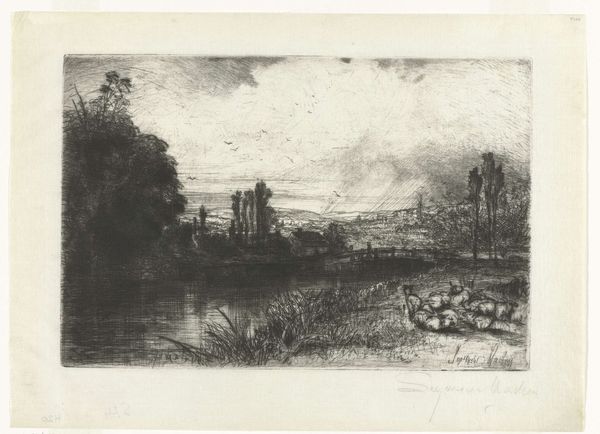Hendrik-Dirk Kruseman Van Elten created this etching, a print of the Delaware and Hudson Canal at Ellenville, capturing a blend of nature and nascent industrial life. The canal, reflecting in its still waters the muted sky, symbolizes passage, connecting disparate worlds through commerce and travel. The waterway motif, echoing through antiquity, links this scene to images of the River Styx, traversed by souls, or the Nile, artery of ancient Egypt. The presence of figures strolling along the bank introduces a human element, evoking the Rückenfigur, a figure seen from behind, often found in Romantic paintings, inviting the viewer to project themselves into the landscape. This figure engages our subconscious, stirring feelings of solitude, contemplation, and the sublime. Just as water erodes stone, the meaning of symbols transforms over time. Here, water no longer represents merely sustenance or passage; it represents commercial industry. The persistent symbol of water reflects our evolving relationship with the natural world, a testament to the cyclical nature of history and the enduring power of images to convey cultural memory.