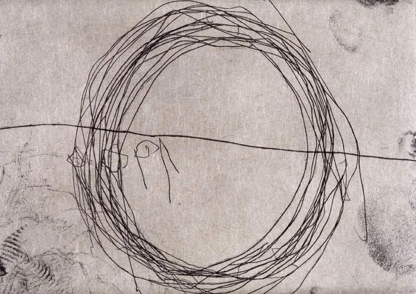 Jiro Yoshihara made this untitled work with oil on canvas, at some point in his career. This isn't a perfectly neat circle, is it? More like a handmade gesture, a starting point. You can really see the mark-making here. The paint has real presence, it feels thick, almost velvety, and you can see little drips where the artist has worked. The contrast between the solid black and the bare canvas is really striking. It’s not about hiding the process, it’s all about the process. This one simple shape becomes kind of profound, in the way it holds itself on the canvas. Look at the slight imperfections, the wobble in the line, the way it almost – but doesn’t quite – meet. For me, this circle echoes the work of Cy Twombly, with its emphasis on the handmade mark, and its embrace of imperfection. It's a reminder that art doesn't always have to be about answers; sometimes, it's about asking the right questions, and leaving space for multiple interpretations.