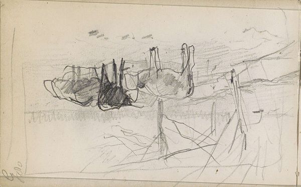 Editor: Here we have Willem Cornelis Rip's "Molen De Hoop bij Veen" from 1905, rendered in what looks like charcoal on paper. The strokes are so rapid, almost frantic. What story do you think this drawing tells, in terms of its historical and cultural backdrop? Curator: Well, consider the historical context. 1905. Rip, deeply rooted in the Hague School, represents a pivotal time in Dutch art where artists grapple with rapidly modernizing society while romanticizing rural life. Windmills weren't just picturesque; they were integral to the Dutch economy and identity. They were vital tools for a struggling community to be self-sufficient. Editor: So the frenetic sketching could reflect anxiety about the changing times? Curator: Precisely. These windmills were symbols of Dutch ingenuity, and rural livelihoods, but increasingly threatened by industrialization. This piece likely becomes an act of preservation, recording a disappearing way of life that Hague School artists, including Rip, deeply valued. Is it simply the beauty of the rural scene, or is it also a social commentary on that period of time? Editor: It's interesting to consider the cultural anxieties baked into what looks like a simple landscape sketch. Almost like visual poetry of socio-economic change. Curator: Indeed, we're witnessing how a quick sketch serves as both documentation and commentary. This sketch, far from a simple depiction, encapsulates the tension between tradition and modernity in early 20th century Netherlands. Something to ponder, no? Editor: Absolutely. I’ll never look at a simple windmill sketch the same way again! Thanks for the insight.