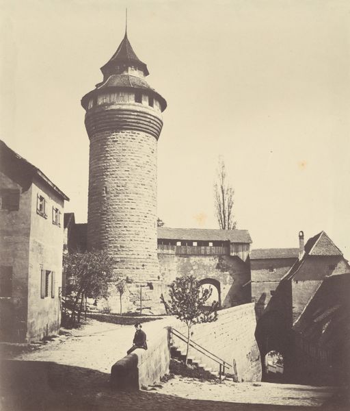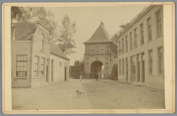 Editor: This is Eduard Isaac Asser’s “Gezicht op de Kleine Houtpoort, Haarlem,” made around 1855. It's a daguerreotype, so one of the earliest forms of photography. I’m struck by the texture of the brick and cobblestone, and the monumental presence of the gate. What do you see in this piece? Curator: For me, the daguerreotype itself is key. Consider the labor involved in producing such an image at that time. Each plate was meticulously prepared, exposed, and developed. This wasn't just a snapshot; it was a significant investment of time and resources. Editor: So, it wasn’t a quick process at all… Curator: Absolutely. It represents a moment where art and industrial processes were intersecting in profound ways. This image documents the gate, but it also embodies the dawn of a new means of production for visual culture. The question becomes: how does the materiality of this early photograph shape our understanding of Haarlem, and of urban spaces in general? Editor: It's interesting to think about the photographic process itself being so central to the meaning. Today, we are oversaturated with photographs. Curator: Precisely. This image also documents social change, not just in its architectural subject, but in making images themselves more available to people who could previously only experience the world through drawings, paintings or prints. So, in that regard, we can appreciate its historical weight through its materiality and the labour it embodies. Editor: I hadn't considered the labor involved and how the image represents changing social access. That's a completely different way of thinking about it. Curator: Considering the processes helps you better understand this work as an artifact tied to a specific historical, social and material context.