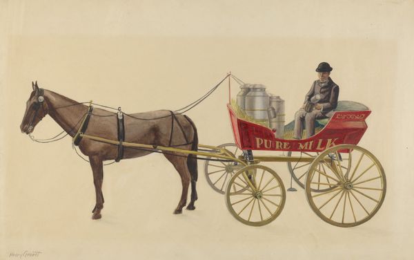 Editor: This is "Paardenkoets in Amsterdam," a watercolor drawing from around 1825 by Roelof van der Meulen. The delicate lines and pale colors give it a really charming feel, but it strikes me as an illustration more than fine art. What's your take? Curator: As a materialist, I find this piece rich with information about production and consumption in 19th-century Amsterdam. Look at the detail in the carriage—the paint, the upholstery, the metalwork. This wasn't just art; it was advertising the lifestyle, the consumption, the very *stuff* of the elite. What materials do you think were locally sourced, and which might have been imported, shaping Amsterdam's economy? Editor: That’s fascinating! I hadn't considered the economic angle. I suppose the wood for the carriage probably came from nearby, but the upholstery, perhaps the dyes for the colors... those could be coming from all over. Curator: Exactly! And consider the labor involved. Who built this carriage? What were their working conditions? Were they independent artisans, or part of a larger manufactory? The image becomes a window into the social structures of the time, not just a pretty picture. Do you think Van der Meulen was intending to portray this broader context? Editor: Probably not consciously, but I see what you mean. Even without intending to, he's captured the materials and production values that tell a much larger story. Thanks! This makes me look at art with new eyes. Curator: Precisely! Every brushstroke represents choices tied to material conditions and human labor. Considering those factors fundamentally alters our understanding of the artwork and its significance.