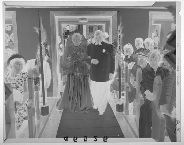 Editor: Here we have an intriguing photograph, simply titled "Untitled (men drinking and smoking in room)" by Lucian and Mary Brown. It feels strangely intimate and staged. What's your take on it? Curator: It's like a glimpse into a private club, or maybe a theatrical gathering. The floral wallpaper juxtaposed with the suited men creates an odd harmony, doesn't it? Editor: It does! It’s almost like a party caught in the wrong camera lens. Curator: Yes, and the mirror reflecting one of the men adds a layer of voyeuristic curiosity. What do you make of that? Editor: Maybe it suggests the subjects are trapped inside their own reflections? Curator: Perhaps. It might be a comment on societal expectations, or just a boozy night! Either way, it offers a lot to ponder. Editor: Definitely. It's a photo that keeps you guessing.