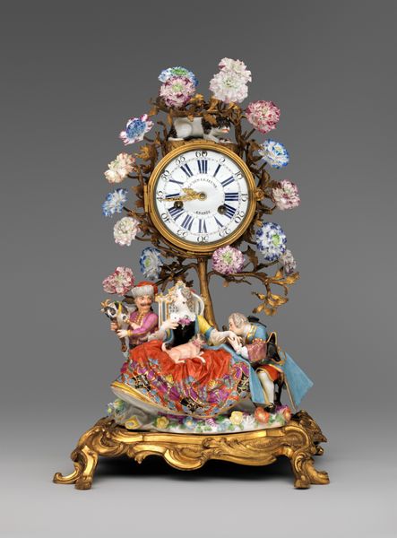 This "Clock" was produced by the Meissen Porcelain Manufactory, using porcelain and glaze. These luxury items, like this clock, reveal a lot about the social and economic structures of the time. During the 18th century, porcelain collecting and display was a popular hobby among the European elite. The craze for porcelain, also known as "white gold", coincided with colonialism. The rise of European global trade with China and Japan, meant porcelain became available for purchase by wealthy Europeans. This clock embodies the intersection of art, commerce, and colonialism. The Meissen factory was one of the first European producers of porcelain, creating these objects for a market that was hungry for luxury goods. This clock, adorned with playful scenes and supported by monkey figures, served not just as a time-telling device, but as a symbol of wealth and global reach.
