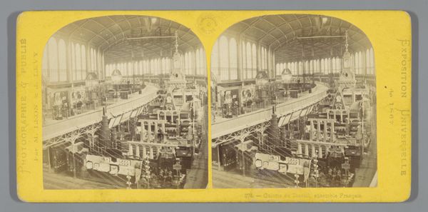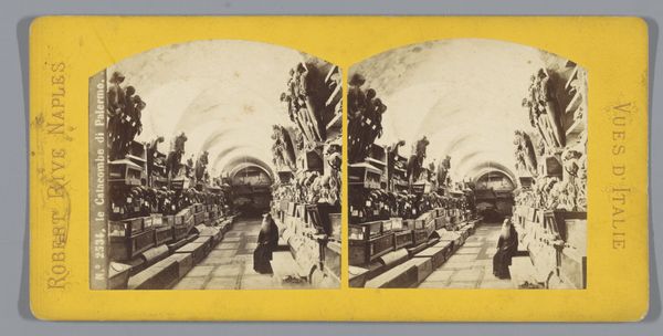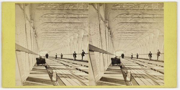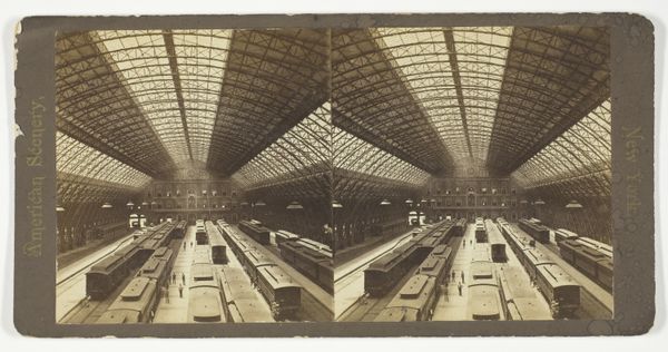 Editor: So, here we have a 19th-century photograph, “Interior of Arcade, Providence, R.I.,” dating somewhere between 1875 and 1899, credited to an anonymous photographer and held at the Art Institute of Chicago. It strikes me as being really controlled and symmetrical, like a stage set for a bustling human drama. What catches your eye when you look at this? Curator: The overwhelming presence of perspective, carefully engineered, guides our eye into the heart of the marketplace. Before elevators, arcades allowed vertical retail within limited space. Note the repeating architectural elements -- the rhythm of arches and skylights. This photograph echoes classical ideals of order and progress. The bustling stalls of the arcade present as emblems of industriousness and enterprise, and promise societal prosperity. What story do these visual components tell, and why capture this commercial space in this format? Editor: Well, the symmetry and forced perspective could suggest a stable, well-organized society investing in itself. It feels propagandistic almost, showcasing commerce and structure. The anonymous attribution adds to the feeling it is representative rather than individual. Curator: Exactly! The lack of a named author reinforces its status as an idealization. This is not about personal vision; it's a constructed symbol of aspiration. Note how even the blurred figures add to the symbolism, representing general activity instead of specific individuals. The marketplace acts as a cultural microcosm reflecting societal values and the aspiration of continuous expansion. Are there any other layers to the picture? Editor: That's really insightful, especially regarding the people being blurred to stand as pure figures within a grand picture. I was viewing them too specifically rather than seeing their cultural role, as you've indicated. Thank you! Curator: And thank you; every interpretation builds on others! By contemplating what has lasted, we can truly learn from our cultural past.