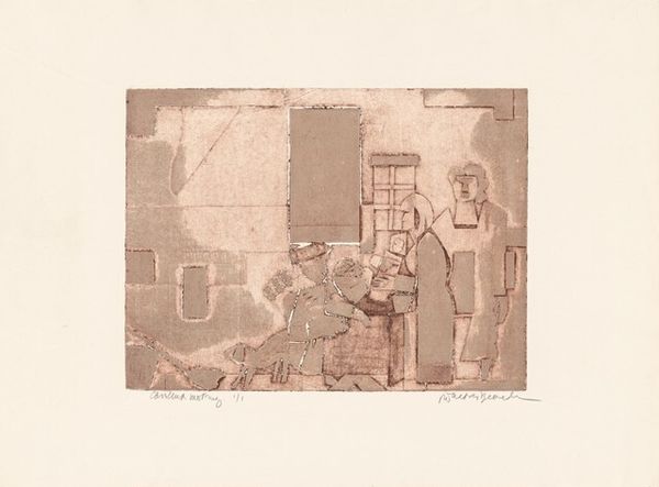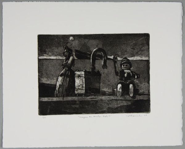 Editor: This is Nathaniel Hester's "Imagine an Anchor Plate 12", a small print, about 13 by 17 centimeters, in the Harvard Art Museums. It looks like a collection of worn objects. What stands out to you? Curator: It’s interesting to consider these discarded objects. What labor did they represent? What social conditions gave rise to their creation and subsequent obsolescence? Editor: So, you're thinking about the stories behind the objects themselves? Curator: Exactly. The printmaking process itself – the labor, the materials involved – mirrors the transformation of these objects. The artist's hand mimics the processes that shaped them. Editor: That gives me a lot to think about! Thanks! Curator: Indeed. These objects and their means of production connect us to larger social and economic systems.
