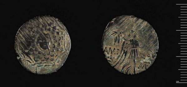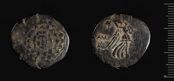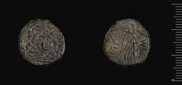 Curator: Here we have a Coin of Sinope. It's attributed to Mithradates VI Eupator. Editor: It looks so…used. Like it’s held a million stories. I wonder what hands it’s passed through. Curator: Exactly. Its well-worn state is, in a way, part of its beauty. Note the careful rendering of the figure on one side. Observe the intentional circular design, how it both frames and centers the subject. Editor: I see the design, but it feels more like a portal. A glimpse into a life or maybe an old memory. I imagine someone clutching it, praying for luck or remembering home. Curator: A powerful connection, wouldn't you say? It speaks to the coin’s function, not just as currency, but as a personal, almost talismanic object. Editor: Definitely more than just money. It carries history, emotion…a real weight, even if it's just a few grams. Curator: Precisely. Seeing it this way, we move beyond simply admiring ancient craft and toward contemplating the lives it touched.