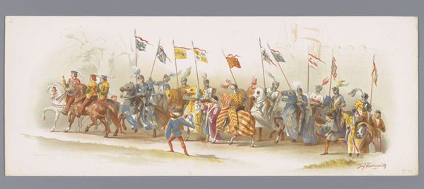 David Claypoole Johnston created this print, Grand Fantastical Parade, New York, December 2nd, 1833, using etching and watercolor. It's a satire, a send-up of social pretensions and political posturing. The very nature of printmaking lends itself to this kind of commentary; it's a relatively democratic medium, capable of circulating widely. Notice how the etched lines define the figures with sharp, almost cruel precision. Johnston then adds watercolor washes, not to beautify, but to heighten the absurdity. Look at the way he renders the costumes, especially the pointed hats and oversized banners. They are so detailed, it's like he wants you to see every stitch, every brushstroke, every flaw. This is where the material really comes into play. Printmaking, by its nature, is about reproduction and distribution. Johnston used this to spread his critical view. The amount of work involved in such detailed etching and coloring emphasizes the labor, highlighting the social context of class, politics, and consumption. Ultimately, Johnston's print challenges traditional notions of fine art. It's a powerful statement made through accessible materials and processes.