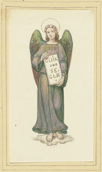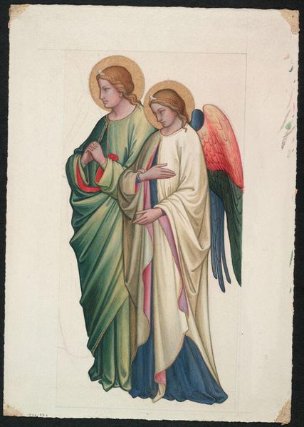 Eduard Jakob von Steinle made this watercolor and graphite drawing of an archangel in the 19th century. Von Steinle would have prepared a detailed drawing in graphite, and then applied thin washes of watercolor to build up color and form. The delicate layering of these washes gives the angel a luminous, ethereal quality, almost as if he is emerging from the heavens. Von Steinle was part of a group of German artists who sought to revive the spiritual values of the Middle Ages through their art. This interest in medieval techniques extended to his working methods. Watercolor was the favored medium of artists who made studies for frescoes, the favored medium for painting church interiors during the Middle Ages. Look closely and you will see that Steinle incorporated text on the angel's shield, a quotation from the Bible, which translates to 'Who is like God?' The phrase underscores the labor and skill in the making of the work and its spiritual intent.