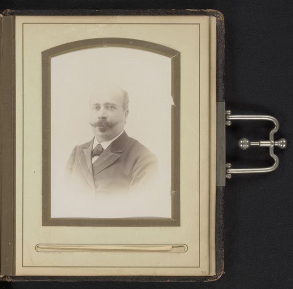 Editor: Here we have "Portrait of a Man with a Moustache" by De Lavieter & Co., dating roughly between 1865 and 1903. It’s a sepia photograph, and what strikes me most is the…ordinariness of it. It feels like a very common image. What can you tell us about it? Curator: It's important to consider the mass production and consumption of photographic portraits in this era. Studios like De Lavieter & Co. industrialized portraiture. Think about the standardization of posing, lighting, even the backdrops – how did these affect the individual's representation and the overall value associated with the image itself? Was it art, or just a commodity? Editor: A commodity? Well, did the process itself – the chemicals, the paper, the darkroom labor – influence how these portraits were viewed and valued by society? Curator: Precisely! And think about who had access to this form of representation. Photography democratized portraiture to some extent, moving it beyond the wealthy elite who could commission painted portraits. But what about the working class? Could they afford this type of memento, this personal artifact of representation? Editor: That's fascinating. It’s easy to overlook the economics of image making, focusing on aesthetics alone. Curator: Exactly. Consider the materiality of this photograph: the paper stock, the developing process – were they trying to mimic the look and feel of painted portraits to appeal to a specific market? How does that affect our reading of the work today? Are we viewing an object of sentimentality, or something produced in a Victorian image factory? Editor: So it's less about the man in the photo, and more about how and why the photograph was created in the first place. I hadn't considered that! Curator: Exactly. By examining the material conditions, we can unpack its social and economic meanings. It reveals that even "realistic" portraiture is very carefully mediated by the labor of artists, artisans, and factory workers involved. Editor: This gives me a lot to think about regarding how art objects circulate in society.