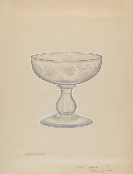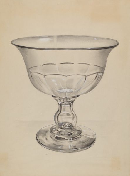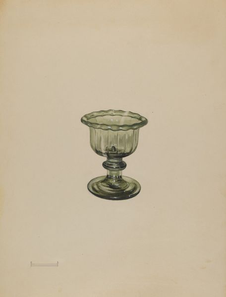 Curator: Looking at John Dana’s watercolor, "Bowl," created around 1936, what stands out to you? Editor: The quietness of it. A subtle study in light and shadow using mostly translucent, pale washes. It has this simple realism that invites contemplation, but it's more than just representation, it feels symbolic. Curator: I agree. I am also struck by the subject's simplicity. The "Bowl" isn't presented amidst other objects or within a scene, inviting a study of form and reflection. It prompts me to wonder if this isolation speaks to a broader sense of detachment pervasive during the interwar period? Editor: I wonder how this "Bowl" may also relate to ideas of containment, maybe referencing the traditional roles assigned to women. A simple object, yet loaded when considering that. It feels resonant. Curator: It does. The bowl as domestic vessel—an element of material culture intertwined with gender and social function—allows this drawing to reveal sociohistorical information about its contemporary environment. Its clear composition and realist detail also connects the aesthetic pursuits of the modernist project with everyday scenes. Editor: Indeed. And watercolor lends itself particularly well to this type of portrayal, capturing a feeling. How the transparent quality is a reference in itself to how we should be more transparent with gender roles and biases that pervade even in art. It feels prescient. Curator: A fascinating consideration. It highlights how artworks, like this quiet “Bowl,” engage and subtly reflect evolving values and expectations. Editor: It’s precisely why approaching such unassuming works from a multifaceted perspective enables art to illuminate a wider field of enquiry, engaging history, philosophy, and identity with what we see. Curator: A thought-provoking experience. I leave with more questions than answers! Editor: As it should be. Art’s power often rests not in providing definite truths, but in the ongoing, critical, empathetic dialogues they incite.