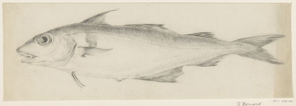 Charles Garjian made this painting of a 'Toy Fish' with watercolor on paper, but we're not sure when. It's the kind of image that feels like it’s been around forever. It’s interesting how the grainy texture gives the fish a kind of antique look, like it was made from old, weathered wood, instead of smooth paint. The simple palette really lets you focus on the fish’s strange form. The dark brown color gives it a feeling of age and solidity. Look at the careful way Garjian rendered each ridge along the fish’s spine, using slight variations of tone to create depth. This attention to detail makes me think about the act of carving or modeling, rather than just painting. I'm reminded of Redon in the way the work transforms an everyday object into something otherworldly. It's less about exact representation and more about opening our minds to possibilities.