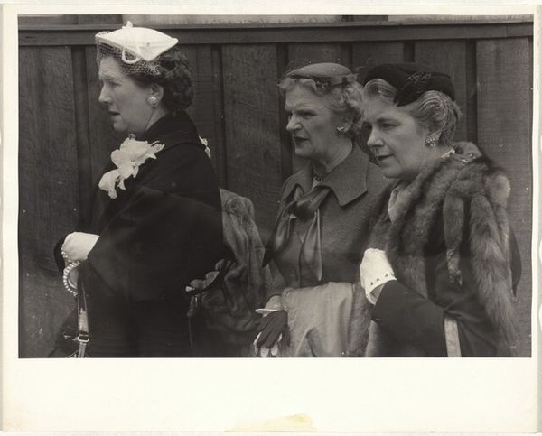 Editor: This photograph, “Three Women—San Francisco,” was taken by Robert Frank in 1956. It’s a black and white print, and there's something very raw and immediate about it. The composition is almost jarring, and I’m curious about that. What strikes you most about this piece? Curator: What grabs me is the stark portrayal of these women and the larger socio-economic forces at play. The gritty aesthetic, the almost brutal honesty of the snapshot, speaks volumes about Frank's methodology. He wasn't interested in staged perfection. Editor: Exactly! You can almost feel the grit of the street. Curator: The "To Lease" sign looming in the background interacts materially with these figures, alluding to displacement and precarity of existence. Think about it—the materials available to Frank, the camera, the film, even the city itself, all dictate the final image we see. These weren't consciously planned images. They represent the everyday conditions of the urban landscape and life on those terms. Editor: So you're saying the materials and environment aren't just background; they’re active participants? Curator: Precisely. And Frank's choice to present it in this unpolished, almost confrontational manner disrupts the idealized image often found in mainstream photography of the time. It becomes less about the subjects themselves and more about their relationship to labor and capital. Editor: That's a completely different way of thinking about street photography than I had before. Thank you. Curator: The context, then, informs our interpretation of the content. Robert Frank gives us a window to interrogate the reality. And maybe he would just walk around the city nowadays too. Editor: Yes, you've opened my eyes to the interplay of social context and photographic choices, which definitely reframes the work!