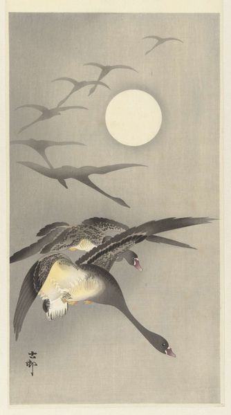 Ohara Koson created this print of geese flying in the snow at an unknown date with woodblock print in colours. The way that the flat surface has been built up through layers of transparent colour feels so contemporary. You can really see the thinking behind the process. The light in this piece is really something. It's hard to describe, but it feels like the geese are glowing from within, and the snowflakes are almost iridescent. If you look closely, you can see the way the ink bleeds into the paper, giving the impression of movement, like the birds are really in flight. I think this is a really beautiful example of how a simple image can be so evocative. The blank space and subtle gradations of tone almost give the impression of watercolour. There is a similar atmospheric quality to the work of Whistler, with the focus on capturing fleeting moments. It reminds us that art is not about capturing a fixed reality, but about creating a space for imagination and interpretation.