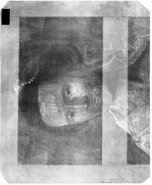 Editor: Here we have an X-radiograph of Titian's "Rape of Europa". It is jarring to see this violent scene rendered in such ghostly tones. What can you tell me about this work beyond the surface? Curator: It's crucial to consider the original painting’s title and subject matter. “Rape” is a loaded term, and examining how Titian and subsequent viewers have interpreted this act of abduction through a mythological lens is key. How does the X-radiograph, by stripping away color and texture, affect our understanding of the power dynamics represented? Editor: That's a great point; the removal of color perhaps mutes the sensuality often associated with Titian, highlighting the violence. I'm left wondering what Europa herself would say. Curator: Exactly. It compels us to question the narrative's romanticization and consider the female perspective, challenging the historical male gaze that has dominated its interpretation. Editor: It certainly provides a lot to think about. Thanks! Curator: My pleasure. I'm glad we could explore these themes together.