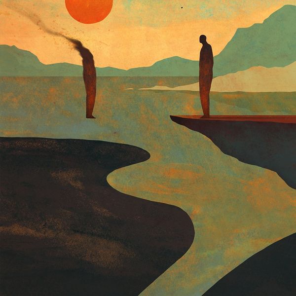Owen Gent made this image, Lumen Counselling - Identity, sometime in the 20th Century, and it looks like it was made digitally, probably using something like Photoshop or Procreate. The colours have a limited palette, and the artist creates a sense of depth using flat planes of colour. I love how the figures are both present and absent - solid blocks of colour with a curious lack of detail in their faces. The surface of the piece feels quite dry and papery, a bit like old tempera paint. There’s a curious ghost-like figure hovering in the background, and an abandoned pair of trousers in the foreground! These elements made me think of Giorgio de Chirico and his metaphysical paintings, which aimed to evoke a sense of mystery and alienation. Gent’s piece isn't quite as unsettling as a de Chirico, but both embrace ambiguity, leaving space for our own interpretations and emotional responses.