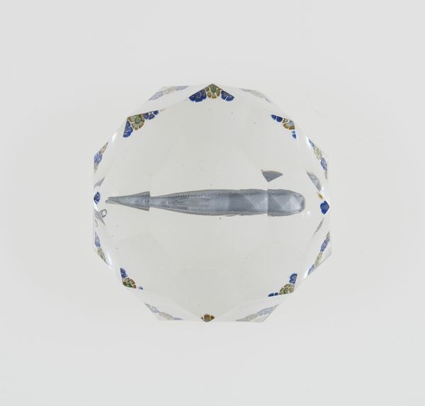 This intriguing paperweight was created by the Clichy Glasshouse between 1837 and 1885, and it's made from glass using a technique called millefiori, which means "a thousand flowers". The process involves arranging tiny glass rods to form intricate patterns, which are then encased in clear glass. This particular example features a striking silhouette of a woman's head, likely made using lampworking, where glass is heated and shaped with tools and manual manipulation. The weight and clarity of the glass are integral to its function, pressing down papers, but the artistry involved elevates it beyond mere utility. The Clichy Glasshouse, like other factories of its time, employed skilled artisans who likely repeated similar designs, balancing individual craftsmanship with factory production. This paperweight challenges our notions of fine art versus craft, inviting us to appreciate the labor, skill, and design inherent in everyday objects.