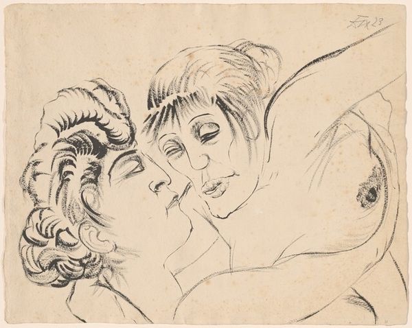 Hendrick Goudt created this sketch, "Drie mannen en een vrouw" which translates to Three Men and a Woman, using pen and brown ink. Goudt, a Dutch Golden Age painter, printmaker, and draughtsman was deeply influenced by his time in Rome during the early 17th century. The image shows four figures closely grouped together, with their gazes directed toward each other in an intimate, perhaps secretive manner. The composition places us as viewers into this tight social circle, allowing for an emotional connection with the individuals depicted. The sketched lines give a sense of movement, as if capturing a fleeting moment of interaction. The artist's choice to portray these individuals, their relationships, and their expressions offers insight into the social dynamics of the time. Gender roles, social status, and personal connections intersect within this small tableau. It invites us to consider the narratives and relationships implied by their proximity and the direction of their gaze.