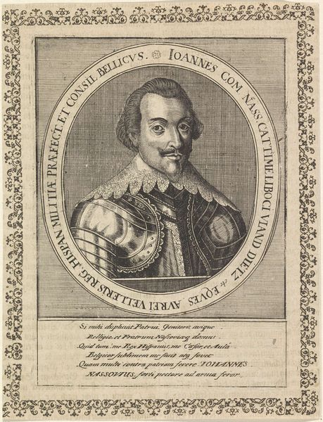 Elias Widemann made this print of Nikola Dras̆ković in 1650. Dras̆ković was a count, and this portrait reflects the culture of nobility that dominated much of Europe at the time. Portraits like this weren’t just about capturing a likeness. They were about communicating status, power, and lineage. Dras̆ković's clothing, with its intricate patterns and embellishments, speaks to wealth and social standing. The Latin inscription around the oval frame, "S.C.RM CONSIL: ET CAMERAR," indicates his roles as a counselor and chamberlain, tying him to the institutional structures of power. The phrase "NON VI SED VIRTUTE" emphasizes virtue over force. This subtly reinforces the idea that Dras̆ković’s position is earned through personal qualities rather than mere inherited power. Understanding this image means understanding the social codes of 17th-century nobility. Resources like genealogical records, historical texts, and studies of courtly life can help us decipher its full meaning. This print serves as a reminder that art is always embedded in a specific social and institutional context.