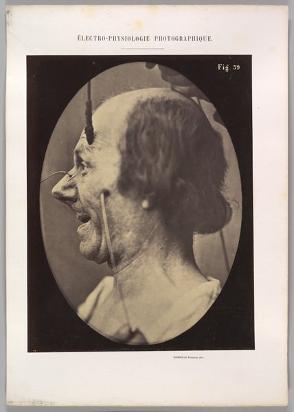 This photograph, "Figure 60: Fright," was created by Guillaume Benjamin Amand Duchenne in the 19th century. Duchenne was a French neurologist known for his work in mapping the muscles of the face and their relation to human emotions. During this period, scientific and medical discourse often intersected with social norms, influencing the representation and interpretation of human behavior. In this image, Duchenne used photography to capture and categorize the physical manifestations of "fright," attempting to create a universal visual language of emotion. But we must ask ourselves, who gets to define these emotions, and how do these definitions affect those being photographed? Duchenne's work, while groundbreaking, reflects the period's inclination to objectify and analyze the human body, raising ethical questions about medical experimentation and representation. Consider the emotional weight of being subjected to such scrutiny, the vulnerability of having one's expressions dissected and categorized. How does this photograph shape, or perhaps misshape, our understanding of human emotion?