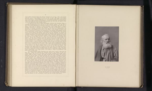 Curator: We’re standing before an intriguing object: a photographic reproduction of a portrait of Michelangelo Buonarroti, dating from before 1887. It resides here in the Rijksmuseum. Editor: My first impression is the deep sepia tones. They give the image a very pensive, almost melancholic atmosphere. There's also a deliberate lack of sharp detail; it obscures something. Curator: Indeed. Photography in its early stages adopted this almost reverent mode. Michelangelo here is less a man than a cultural symbol, a Titan of the Renaissance rendered timeless by the new medium. The beard, of course, a direct allusion to the sages and prophets of old. Editor: You know, it's interesting that you mention "timeless." Because the materiality of the photo itself betrays the period it was made, despite the subject's legacy. The limited tonal range of early photography also creates a flattened depth— Curator: That's a very salient point. What we’re witnessing, then, is the Victorian era’s gaze upon a Renaissance master. They're attempting to capture the raw creative power, or rather, their romanticized notion of it, making him a myth, even in reproduction. The photographic print also allows mass dissemination of this imagery, cementing Michelangelo into the visual lexicon of Western art. Editor: The very notion of capturing greatness with this kind of documentary process is fascinating! Does it truly reproduce? I notice, for example, the pose itself is common enough within painted portraits, a classic 3/4 angle. In contrast to the almost romantic haziness we observe. What's recorded is not simply an appearance, but the artistic mythos around this icon. Curator: Precisely. This work acts like a cultural mirror. The photographic representation becomes an act of enshrining—Michelangelo becomes, for a nineteenth-century audience, something akin to a patron saint of artistic genius. Editor: Considering the subject matter, the medium is actually quite thought-provoking. I leave here with a deeper appreciation for the visual processes involved in how memory is preserved and refigured, through aesthetics. Curator: And perhaps also, with a question lingering: what does it truly mean to 'capture' the essence of such an epoch-defining artist? A mystery worth further study, indeed.