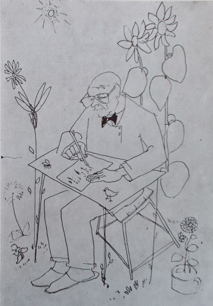 Curator: This untitled drawing by Kukryniksy from 1948 seems stark, almost unsettling at first glance. The ink creates sharp contrasts, and the subject appears quite severe. Editor: Yes, the heavy shadows definitely create a sense of unease, almost foreboding. There's something distinctly unwell about this figure, visually and perhaps even metaphorically. Tell me more about the piece itself. Curator: Well, it’s a caricature done in ink, part of the Soviet Social Realism movement. The piece skewers a lone male figure seated with various medical implements, as well as an apparent form that he is completing. Editor: Social Realism as a satirical mode is certainly interesting. It's critiquing from within a system. I’m struck by the contrast between the sterile medical environment and the palpable sense of anxiety the figure emanates. There’s also that shadow – a giant ear dripping some kind of fluid. Curator: The symbolism here is crucial. It engages the intersection of Soviet social policy and healthcare access after WWII, with the artist commenting on what appears to be either a feigned or, regardless, overly dramatized sense of personal illness. It could reflect skepticism towards those exploiting state provisions. Editor: The ear and the dripping liquid... could be construed as both surveillance and, perhaps, the draining of resources. There’s definitely an interplay of power dynamics here. Curator: Exactly. Kukryniksy were masters of using art to shape public opinion and convey a very specific message sanctioned by the state. The exaggerated features are meant to evoke contempt, maybe even ridicule, highlighting what was likely understood as parasitic behavior. Editor: So, it's a carefully constructed image functioning as social commentary, specifically engineered to enforce social norms of the time? Curator: Precisely. By understanding the socio-political framework of post-war Soviet society, we see beyond the visual severity, and recognize the artwork as a powerful tool in maintaining a specific ideological narrative. Editor: Seeing the work within its social context really transforms my understanding from that initial unsettling feeling to recognizing it as a tool of state control.