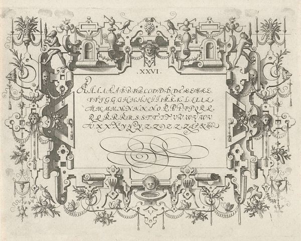 This print, made by Johannes or Lucas van Doetechum, presents a cartouche adorned with dogs and scrollwork. It reflects the printmaking boom of the 16th and 17th centuries in the Netherlands. The image is a complex interplay of text and ornament. The cartouche, a decorative frame, surrounds lettering that displays upper and lower case alphabets. The design incorporates playful motifs of dogs and scrollwork, reflecting a culture that valued both artistic skill and refined taste. The inclusion of Latin phrases offers a glimpse into the educational norms and humanist ideals that circulated in intellectual circles. The print's function lies at the intersection of art and commerce. Produced in a print shop, its purpose was likely to serve as a model for other artisans, demonstrating the latest styles in lettering and ornamentation. In the absence of copyright laws, printmakers played a crucial role in disseminating visual ideas. To understand the role of prints like these, we can turn to archives of printmakers and collections of pattern books, to reconstruct the social life of images in the early modern period.