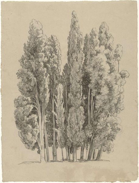 Alexander Blom’s ‘Opløbne bøge’ presents a landscape rendered in precise lines, capturing a serene copse in pen and ink. The composition focuses on a cluster of trees, their delicate branches sketched against an open sky, evoking a sense of airy spaciousness. Blom employs a calculated formalism; the structured arrangements of lines create texture and depth, inviting contemplation on the interplay between nature and artistic representation. The precision of the lines and the considered composition invite a semiotic reading. It invites a moment of reflection on how we perceive and categorize the natural world through art. The drawing challenges us to destabilize conventional landscape depictions. It reminds us of art's capacity not just to mirror but also to redefine our understanding of space. It’s a representation of the enduring dialogue between art, perception, and being.