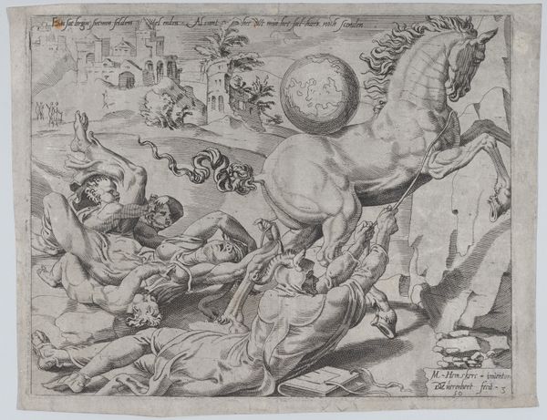 This print, "Zittende vrouw en man," was made by an anonymous artist through the process of engraving. The dense, swirling composition of figures and foliage is entirely dependent on the crisp lines incised into the metal plate, from which the print was pulled. Notice how the varying thickness and proximity of the lines create a sense of depth and shadow, modeling the forms of the figures and suggesting the texture of the leaves. The design closely mimics the look of a carved frieze. Prints like this played a crucial role in disseminating visual ideas widely, before photography was available. Its anonymous maker was likely a skilled artisan, attuned to the market demand for decorative motifs. By blurring the line between fine art and reproductive craft, the print gives us insight into the visual culture of its time.