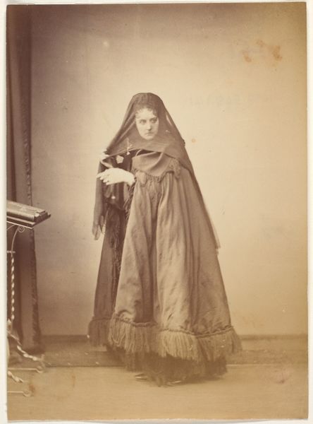 Editor: This is a photograph titled "Costumes of Michaelenses, Azores, Portugal" by A.J. Rapozo. It shows a barefoot woman in a long skirt and shawl. It feels very staged, almost like an anthropological study. What do you see in this piece? Curator: I see a powerful intersection of identity and representation. The “costume” isn’t just clothing; it's a visual marker deeply intertwined with cultural narratives of the Azores. Who gets to define and document these narratives, and for what purpose? Editor: So, it's not just a simple portrait? Curator: Exactly. The very act of photographing and labeling it as "costume" positions the woman as an object of study. Considering the lack of information about Rapozo, we need to ask how colonial power structures might be at play in shaping this image. Editor: That's a perspective I hadn't considered. It makes you wonder about the woman's own voice and agency. Curator: Precisely. It encourages us to question the photographer's gaze and the broader socio-political context in which this image was created and consumed. Editor: I’m leaving with so much more than I expected. Thanks!
