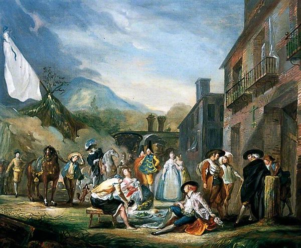 Thomas Jones Barker created "News of Battle. Edinburgh after Flodden" to capture a moment of profound national grief. Set against the backdrop of Edinburgh, the painting depicts the immediate aftermath of the Battle of Flodden in 1513, a devastating defeat for the Scots against the English. The image is thick with the emotional weight of the devastating news. Barker focuses our attention on the women, who are collapsing with despair, clutching their children as they learn of the death of their husbands, fathers, and sons. The painting thus poignantly reflects the gendered dimensions of warfare, and the disproportionate impact on women and families left behind. The armored messenger on horseback delivers not just news, but a rupture of the social fabric. Barker masterfully conveys a sense of communal mourning, a shared experience of loss that transcends individual stories. This painting prompts us to consider how national tragedies resonate on a personal level, shaping individual and collective identities.