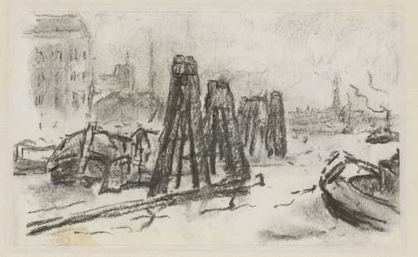 Willem Cornelis Rip made this pencil drawing, titled "Figures on the Beach," at an unknown date. The subject matter offers an intimate glimpse into Dutch society and the rise of leisure activities during the late 19th and early 20th centuries. The sketch likely captures a scene from Scheveningen or a similar coastal resort. Here, beachgoers from various social classes gather to enjoy the sea air and social interactions. The bathing machines, the figures and the clothing function as visual codes that speak to cultural shifts and the growing accessibility of leisure time. The composition may seem simple, yet it reflects broader socio-economic changes in the Netherlands. To fully understand this drawing, further research into the history of Dutch coastal resorts, the evolution of beach culture, and the social dynamics of leisure would be needed. Through such investigation, art becomes a meaningful artifact, reflecting and commenting on the social structures of its time.