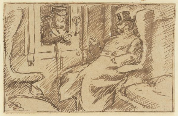 Wilhelm Busch, born in 1832, created this pen and ink drawing, titled 'Herr Knopp wird im Wirtshaus begrüßt', or 'Mr. Knopp is greeted in the tavern', which is now held at the Städel Museum. Busch, a 19th-century German artist, lived during a period of significant social upheaval and industrialization. He offers a glimpse into the cultural norms and social interactions of his time. The drawing shows a scene from everyday life, yet it is tinged with the potential for commentary on class and gender dynamics within the tavern setting. Notice how the characters are positioned; their gestures and expressions suggesting an environment ripe with social performance. There is a somewhat theatrical welcome of Herr Knopp by the men in the tavern. Busch’s sketch provides insight into the rituals and societal expectations that shape social identities. Busch's work prompts us to consider the relationship between individual identity, social spaces, and the unspoken rules that govern our interactions.