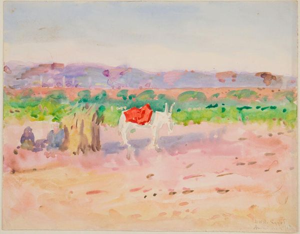 Editor: Here we have Dodge Macknight's "Red Roof," a watercolor landscape painting held at the Harvard Art Museums. It’s rather cheerful, with bright colors and a simple composition. What can you tell me about this piece? Curator: Macknight's works, often watercolors like this, gained popularity due to their accessibility and vibrant depictions of everyday scenes. Consider how the art market and galleries shaped his success, catering to a growing middle class with a taste for Impressionistic styles. Do you think the lack of precise dating affects its market appeal? Editor: That's a good point, it does give the work a certain timelessness. I hadn't considered the market implications before! Curator: Exactly. And think about how institutions like the Harvard Art Museums play a role in preserving and showcasing such works, shaping our understanding and appreciation of artists like Macknight. Editor: I learned a lot about art and market. Thank you. Curator: My pleasure! It’s fascinating to consider these paintings in their broader cultural context.