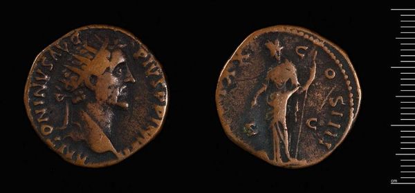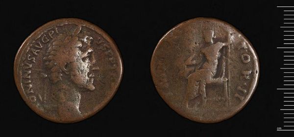 Editor: Here we have a coin of Tarsus under Antoninus Pius, from the Harvard Art Museums. Given its age, the wear and tear are remarkable. What strikes you about this piece? Curator: Considering its form, we must investigate the social and economic systems it represents. Who controlled the production and distribution of these coins, and what did that signify about their power? How did the materiality of bronze affect its use and value? Editor: So, the coin is more than just an artifact? Curator: Precisely. It's a product of its time, reflecting Roman imperial power and the city of Tarsus's place within that structure. Even its degradation tells a story of circulation, use, and eventual loss. Editor: Fascinating, I didn't consider that! Thanks for opening my eyes to its socio-economic context.