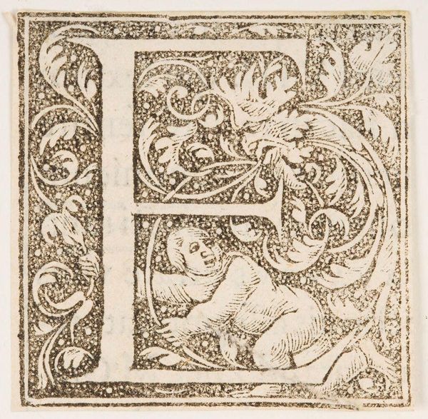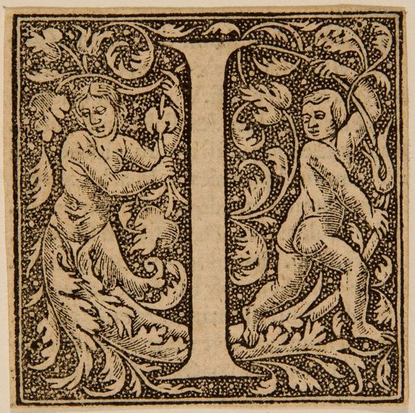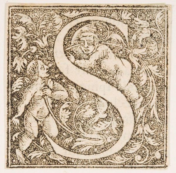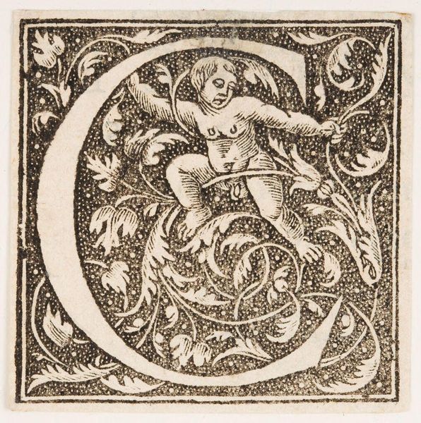 Editor: This initial, "Letter Q," by an anonymous artist, has such strange figures entwined within it. What do you see in this piece? Curator: Consider the social function of this image: a decorative initial. Its purpose is to signal the beginning of something important. The grotesque figures, popular in the Renaissance, subvert that expectation, injecting humor and perhaps even a touch of the subversive. Editor: So, its role as decoration allows for a playful disruption of expectations? Curator: Precisely! It highlights how art can simultaneously uphold and challenge social norms, even within something as seemingly simple as a letter. Editor: That’s a fascinating point. I’ll definitely look at illuminated letters differently now.