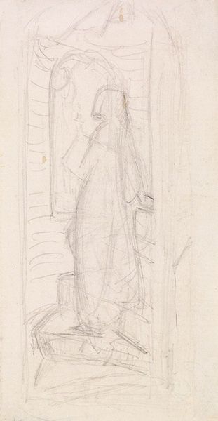 This is George Romney's sketch, "An Elegant Lady in Classical Dress," likely rendered with pen and ink. The drawing emphasizes line, with an economy of means. The network of lines, seemingly spontaneous, constructs a figure draped in classical garb. Romney's technique is striking for its incompleteness, as though the drawing is in the process of becoming. The lines coalesce to suggest form but stop short of fully defining it. This incompleteness invites speculation about the nature of representation itself. The semiotic implications here revolve around what is left unsaid, the vacant spaces within the drawing. These act as signs of potential, invoking classical ideals of beauty and elegance. By not solidifying the form, Romney engages with philosophical questions about the limits and possibilities of art, suggesting that the essence of beauty may reside in the suggestive sketch rather than the finished portrait. The drawing functions as a cultural signifier of its time, an era enamored with classical antiquity, yet questions the ability of art to fully capture its essence.