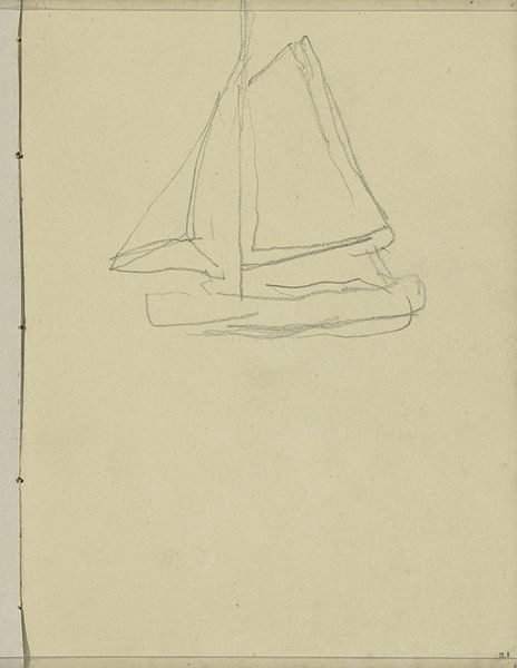 Curator: Welcome. Here we have George Hendrik Breitner's pencil drawing, "Bomschuiten," created between 1880 and 1882, currently held in the Rijksmuseum collection. Editor: It's minimal and ghostly. Those boats almost seem to be dissolving into the paper, barely there. Curator: Indeed. Notice the stark contrast between the precise, almost mechanical lines defining the boats' structure and the looser, sketchier strokes suggesting the surrounding environment. Breitner masterfully employs line weight to establish depth and texture. Editor: It speaks volumes about labor, too. These weren’t leisure craft; they were fishing boats, vital to the Dutch economy and working-class livelihoods. I'm curious how this image challenges or reinforces maritime labor hierarchies. Who owned the boats? Who did the dangerous work? How does Breitner's work fit into art’s role in valorizing—or ignoring—the laboring classes? Curator: It also illustrates a tension central to the impressionistic project itself: How to portray the fleeting effects of light on objects without sacrificing formal accuracy. Breitner captures a sense of motion. The scene feels like a quickly-executed observation, valuing the visual sensation over photographic realism. Editor: I wonder about that so-called objectivity. Breitner, as a flâneur, likely had certain class privileges and ways of viewing these fishing communities from the outside. We should acknowledge his positioning to responsibly read into the narratives within. Curator: Perhaps, but consider how he prioritizes the experience of perceiving—his fascination with light and movement above all. He encourages the viewer to participate in actively discerning shape from line, rather than passively absorbing details. Editor: The beauty of it, in my eyes, lies in how the apparent simplicity hints at larger dynamics that structured 19th-century Dutch life. Curator: It reveals that less can be more, and opens itself to endless possibilities when considering form and perspective. Editor: Agreed. The boats on this sketch offer compelling insights into society, labor, and the gaze itself.