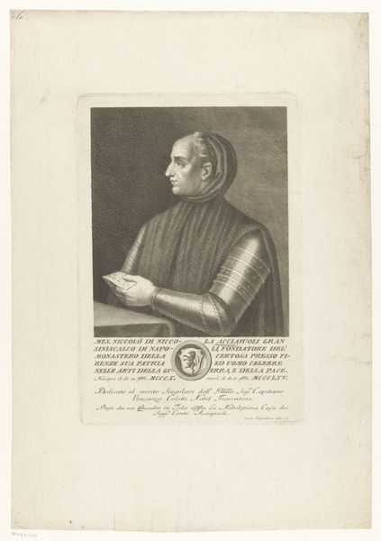 This is Gaetano Vascellini’s portrait of the writer Lapo da Castiglionchio, made using etching techniques. Notice how Vascellini employs a formal style, focusing on the subject’s profile. The artist utilizes a limited tonal range, creating subtle gradations in shading to model Lapo’s features and clothing. The sharp, clean lines define the contours of his face and robe, giving the portrait a crisp, almost graphic quality. The hatching and cross-hatching create depth and volume, particularly in the rendering of the face and the folds of the robe. The composition is carefully balanced, placing the figure slightly off-center to draw the eye across the image. The linear precision and clarity emphasize the intellectual and noble character of the sitter. The portrait’s formal restraint and attention to detail invite us to consider how such visual choices reflect the values of the time, where clarity and order were prized as virtues.